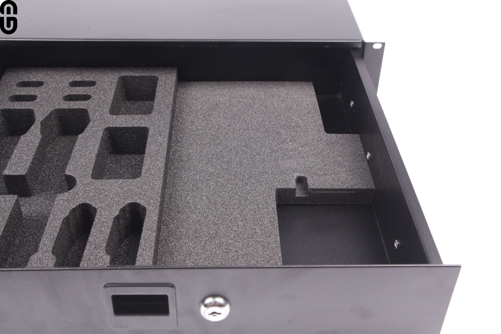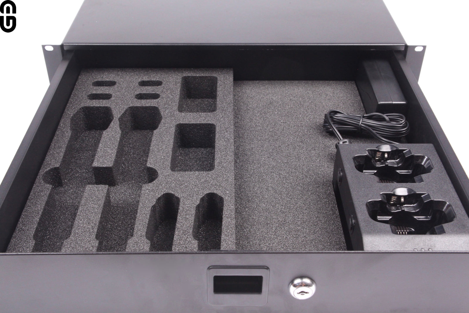 Das Inlay sorgt für die Fixierung der Ladestation in deiner Rackschublade – der Lader bleibt sicher in der Rackschublade und verrutscht nicht. Gleichzeitig bleibt ausreichend Platz für weiteres Zubehör.